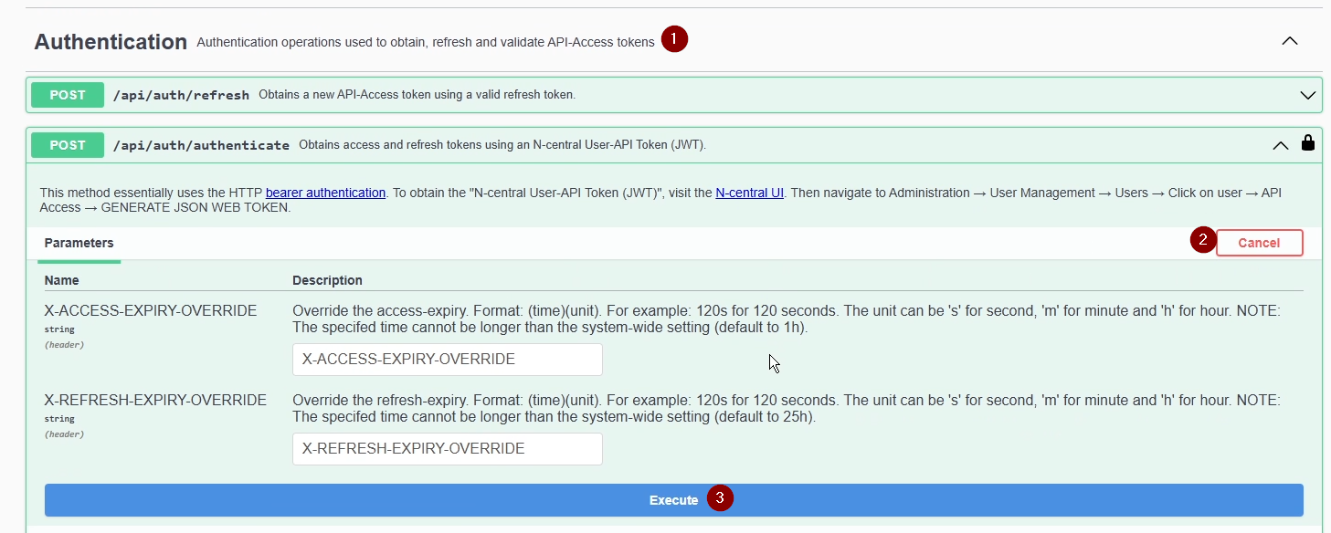 2.3 Navigieren Sie jetzt zu folgendem API-Befehl: Authentication → Try it out → Execute.