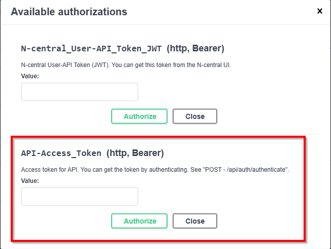 2.5 Kopieren Sie diesen Token und fügen Sie ihn anschließend wieder über den Authorize-Button im freien Feld unten ein. Bestätigen Sie dies erneut mit "Authorize".