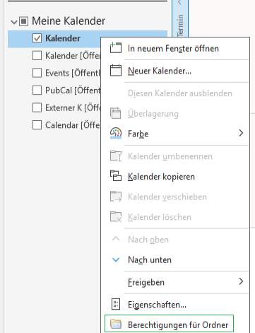 Ordnerfreigabe der Kontakte und Kalender an Kollegen und andere Benutzer