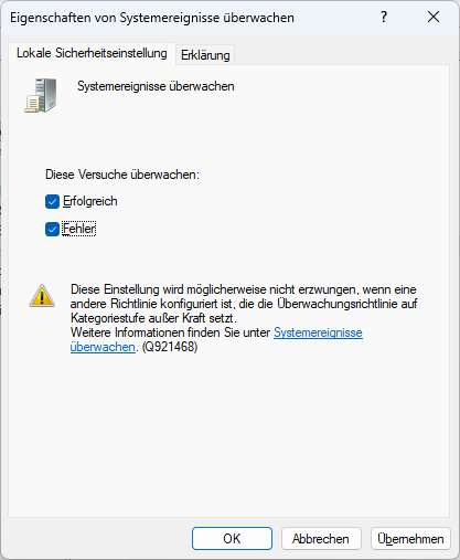 Nach Aktivierung finden Sie Fehlermeldungen vom "Two-way sync" Benachrichtigungsdienst in der Ereignisanzeige unter Windows-Protokolle → Sicherheit.