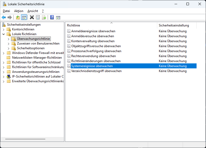 - Öffnen Sie "Systemereignisse überwachen" mit einem Doppelklick.