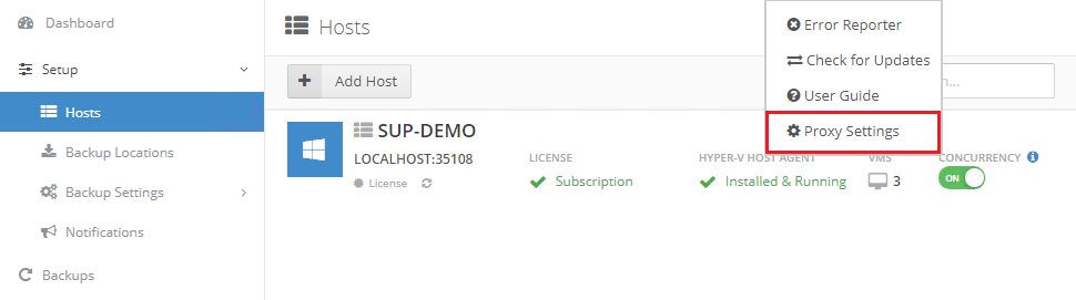 Seit Version 8.4.10 können Sie in Altaro VM Backup Ihre Proxy-Einstellungen hinterlegen. Diese müssen Sie hinterlegen, um - eine Altaro-Installation mit der Cloud Management Console (CMC) verbinden,