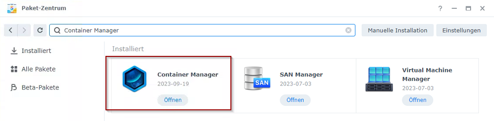Suchen Sie unter Alle Pakete nach "Container Manager".