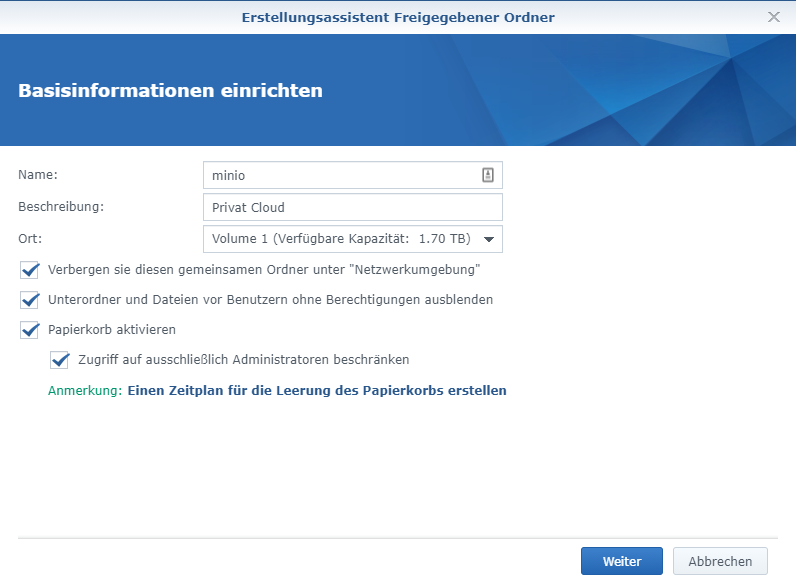 MinIO-Ordner auf der Synology NAS konfigurieren