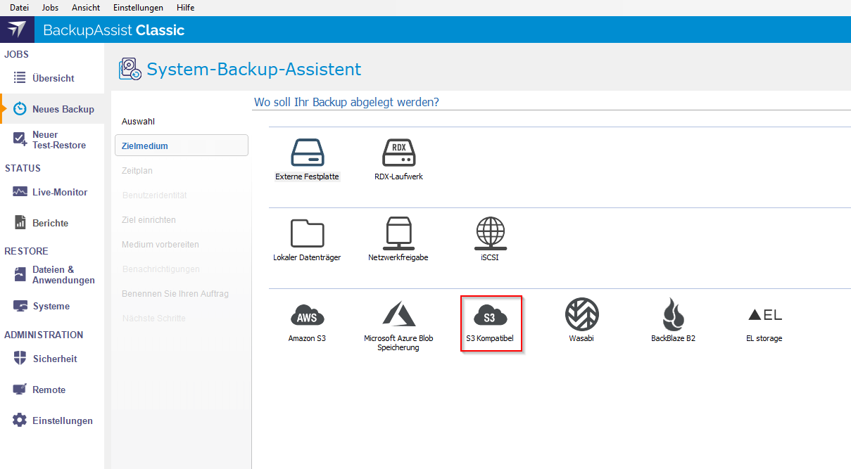 Mit unserer Datensicherungslösung BackupAssist Classic ist es möglich, Cloud-Backups in einen S3-Object Storage zu schreiben.