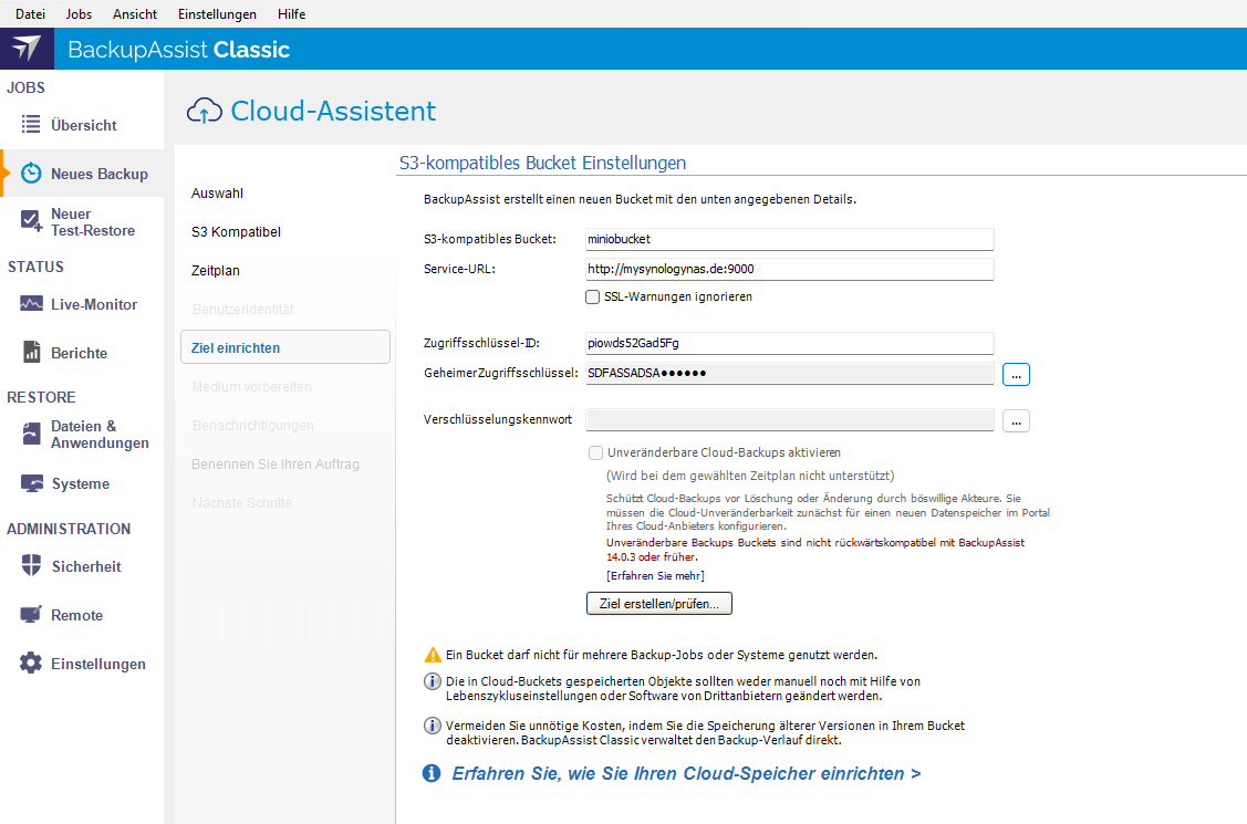 S3-Backup mit BackupAssist Classic zu Synology NAS mit MinIO konfigurieren