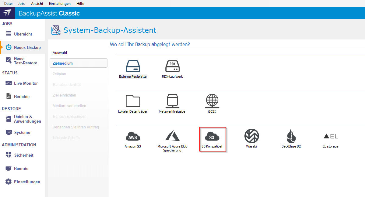 Mit unserer Datensicherungslösung BackupAssist Classic ist es möglich, Cloud-Backups in einen S3-Object Storage zu schreiben.