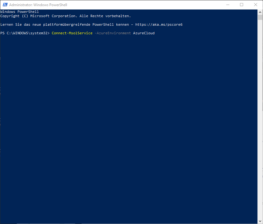 Zusätzlich ist die Installation des MSOnline-Modules für die PowerShell nötig. Der korrekte Befehl hierfür lautet: