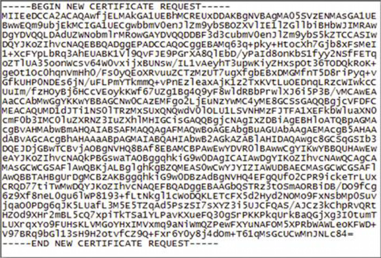 Abschließend wählen Sie den Speicherort für den CSR. Sie sollten hier einen Ort wählen, den Sie leicht wiederfinden können. Der Inhalt des fertigen CSR stellt sich in einem Text Editor wie folgt dar: