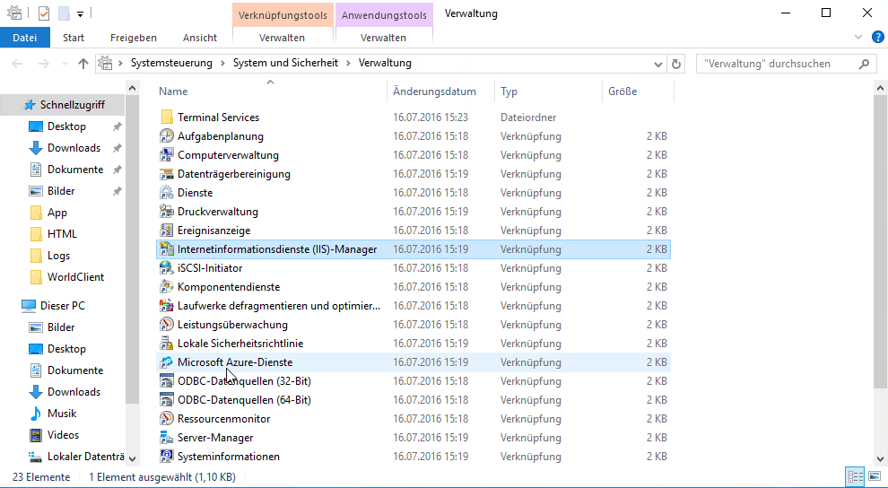 Hinweis: Diese Rolle muss zuvor installiert sein. Der einfachste Weg den Webserver auf einem Windows Server zu installieren, ist über den "Server-Manager": (Start → Windows-Verwaltungsprogramme → Server Manager)