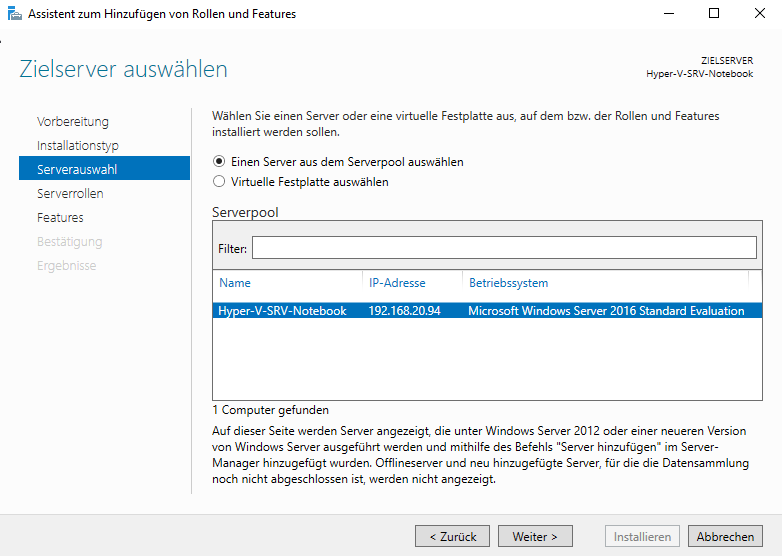 Hinweis: Nach der Installation muss der Server einmal neu gestartet werden.