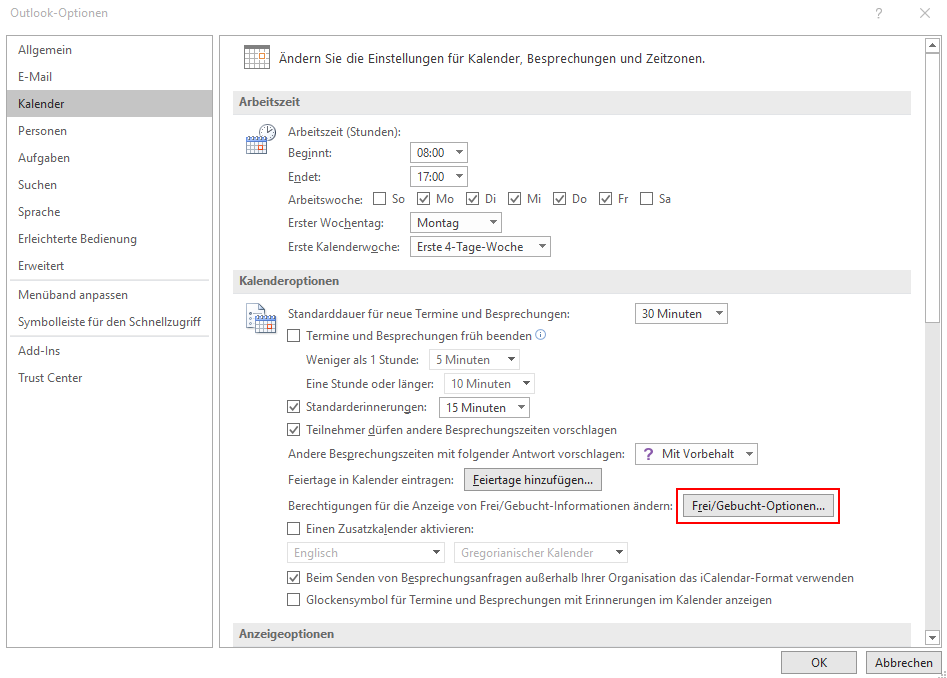 Terminplanung: Frei/Gebucht-Funktion unter Microsoft Outlook verwenden