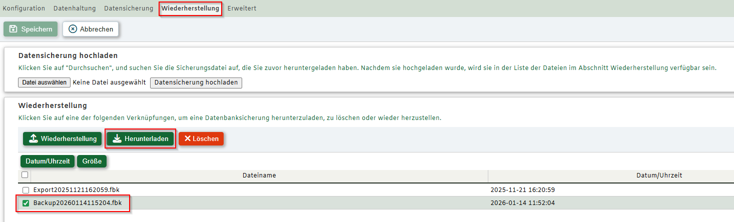 Nach Abschluss gehen Sie auf "Wiederherstellung" und wählen das Backup aus. Jetzt laden Sie dies mit der "Herunterladen"-Schaltfläche herunter.
