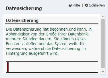 Daraufhin öffnet sich ein Fenster, welches den Fortschritt der Sicherung anzeigt.