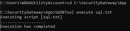 - Führen Sie folgenden Befehl aus: sgdbtool execute sql.txt