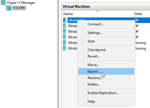 - Nachdem die VM erfolgreich exportiert und die Daten auf die Haupt Hyper-V Umgebung verschoben wurden, öffnen Sie den Hyper-V Manager der primären Hyper-V-Umgebung.