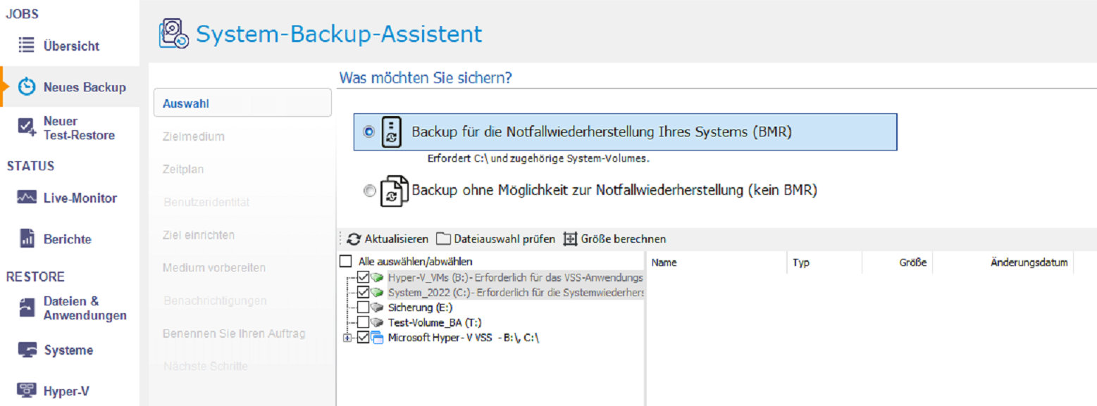 In den folgenden Schritten wird beispielhaft erklärt, wie Sie ein Hyper-V-Backup auf eine externe Festplatte erstellen.
