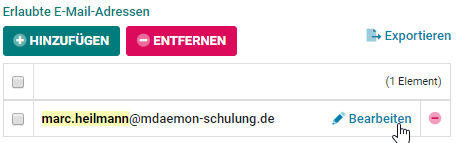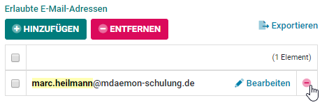 Entfernen können Sie einen Eintrag über das Minus-Symbol: