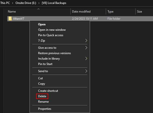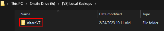 - Öffnen Sie den Parent-Ordner, um den [AltaroV7]-Ordner zu finden.