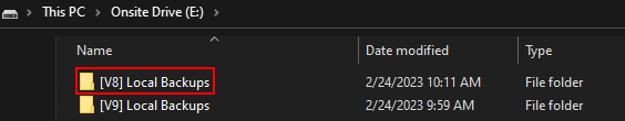 - Löschen Sie diesen Ordner, um die lokalen V8-Backup-Datensätze zu entfernen.