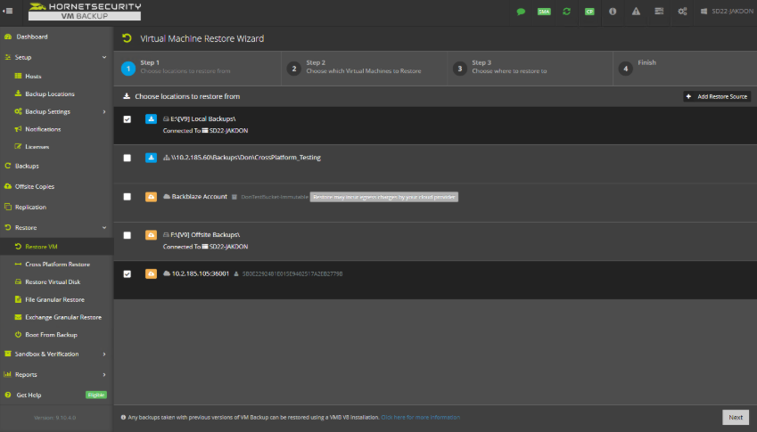 Wählen Sie einen oder mehrere Backup-Speicherorte aus, die die Backups der VMs enthalten, die Sie wiederherstellen möchten. Klicken Sie dann auf [Weiter], um fortzufahren.