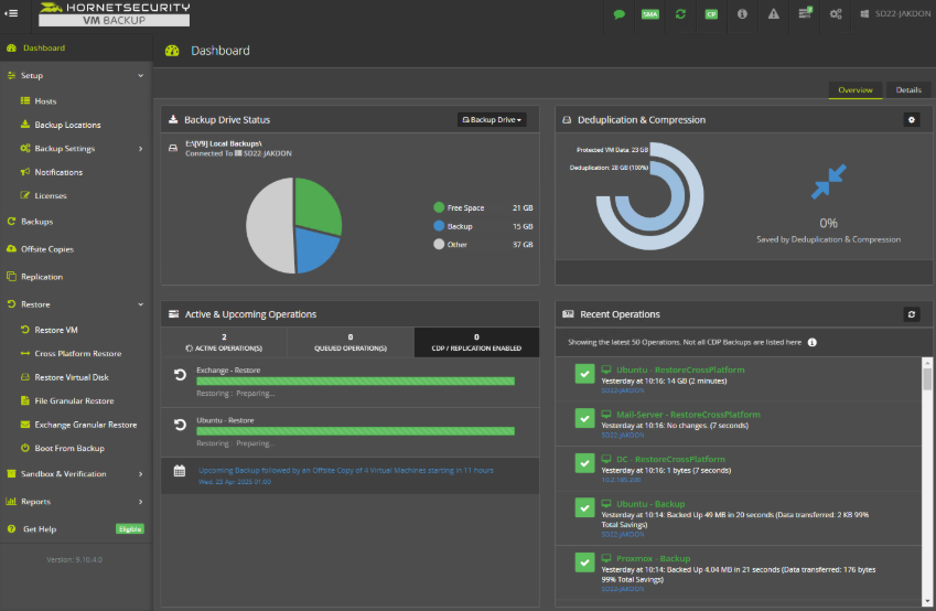Nach Abschluss sehen Sie die abgeschlossenen Wiederherstellungsoperationen im Dashboard, und Ihre geklonten VMs erscheinen auf dem angegebenen Host.