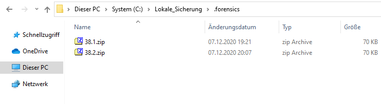 2) Kopieren Sie die forensischen ZIP-Dateien an einen Ort, auf den die Ermittler Zugriff haben.