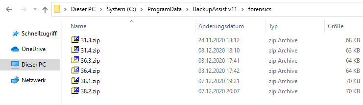 1) Öffnen Sie den versteckten Ordner C:\ProgramData\BackupAssist v12\forensics.