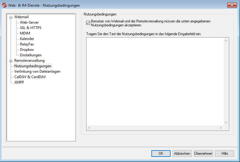 Webmail-Login: Nutzungsbedingungen zur Zustimmung einrichten