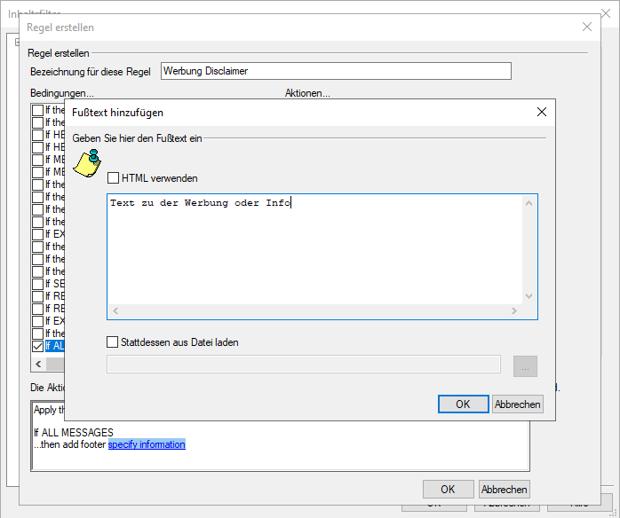 Werbung/Disclaimer an alle ausgehenden E-Mails hinzufügen