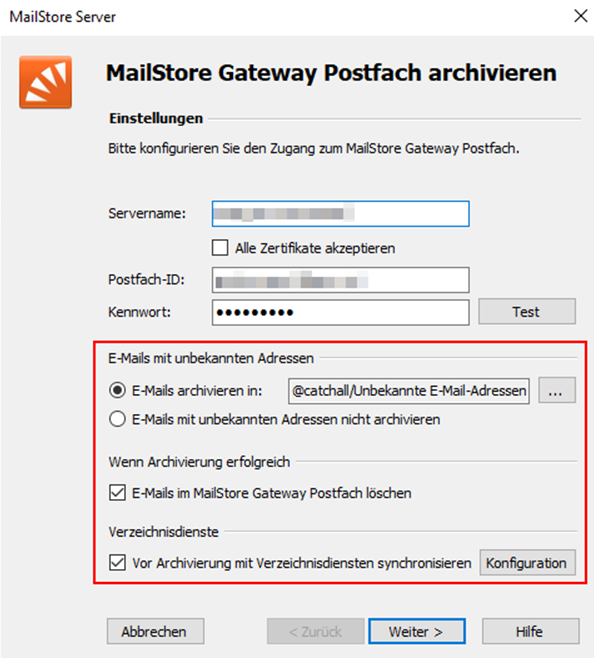 Aktivieren Sie diese Funktion, damit das Postfach nicht vollläuft und der Archivierungsprozess nicht unnötig Last durch den Abgleich bereits archivierter Nachrichten auf dem System erzeugt. Es werden nur erfolgreich archivierte Nachrichten gelöscht.