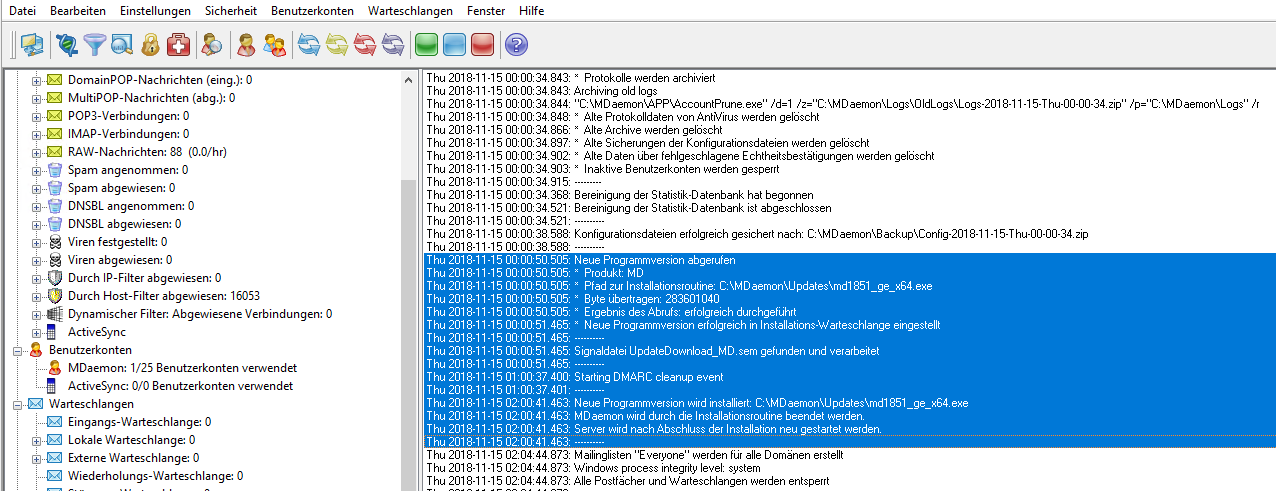 Im folgenden Artikel wird beschrieben, wie Sie im MDaemon Email Server die automatische Softwareaktualisierung aktivieren. Diese bietet die Funktion, automatisch nach neuen MDaemon-Versionen zu suchen und diese dann manuell oder automatisiert zu installieren. Die Installationsdateien werden automatisch abgerufen und anschließend (wenn gewünscht) zeitgesteuert installiert.