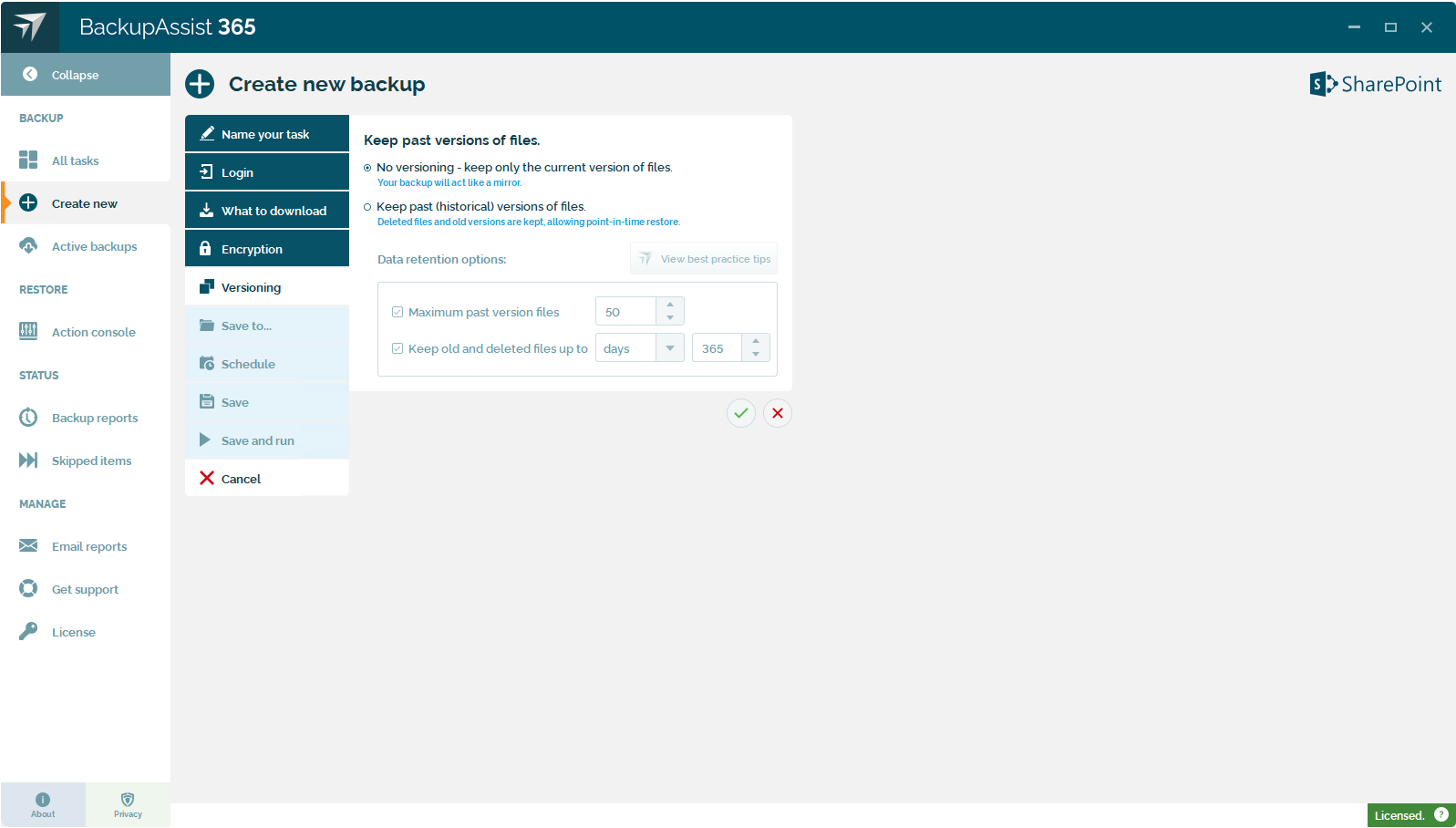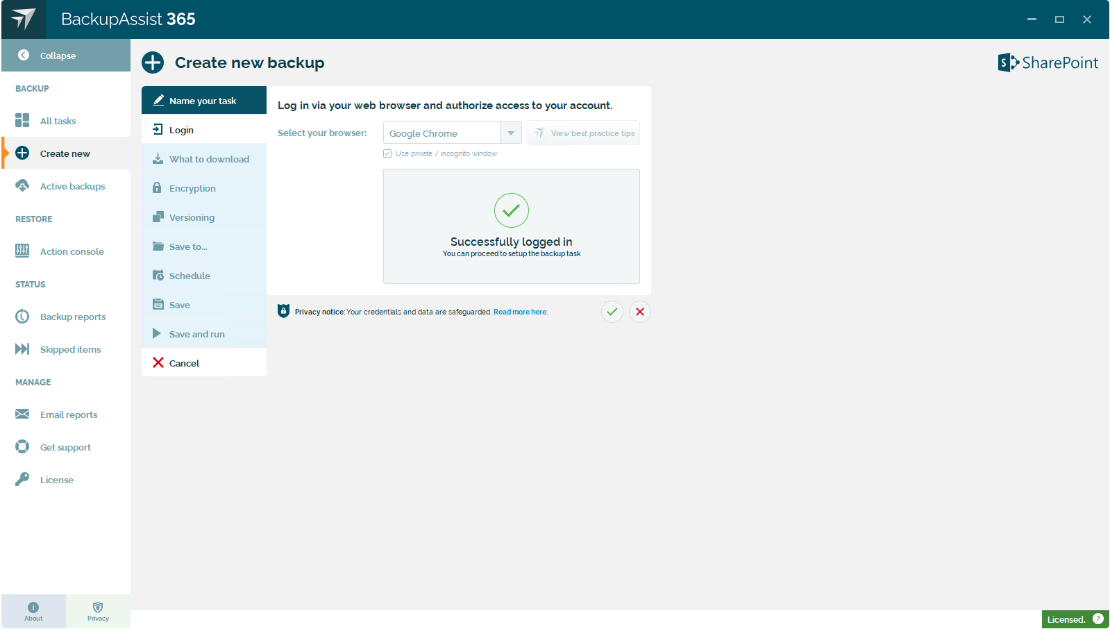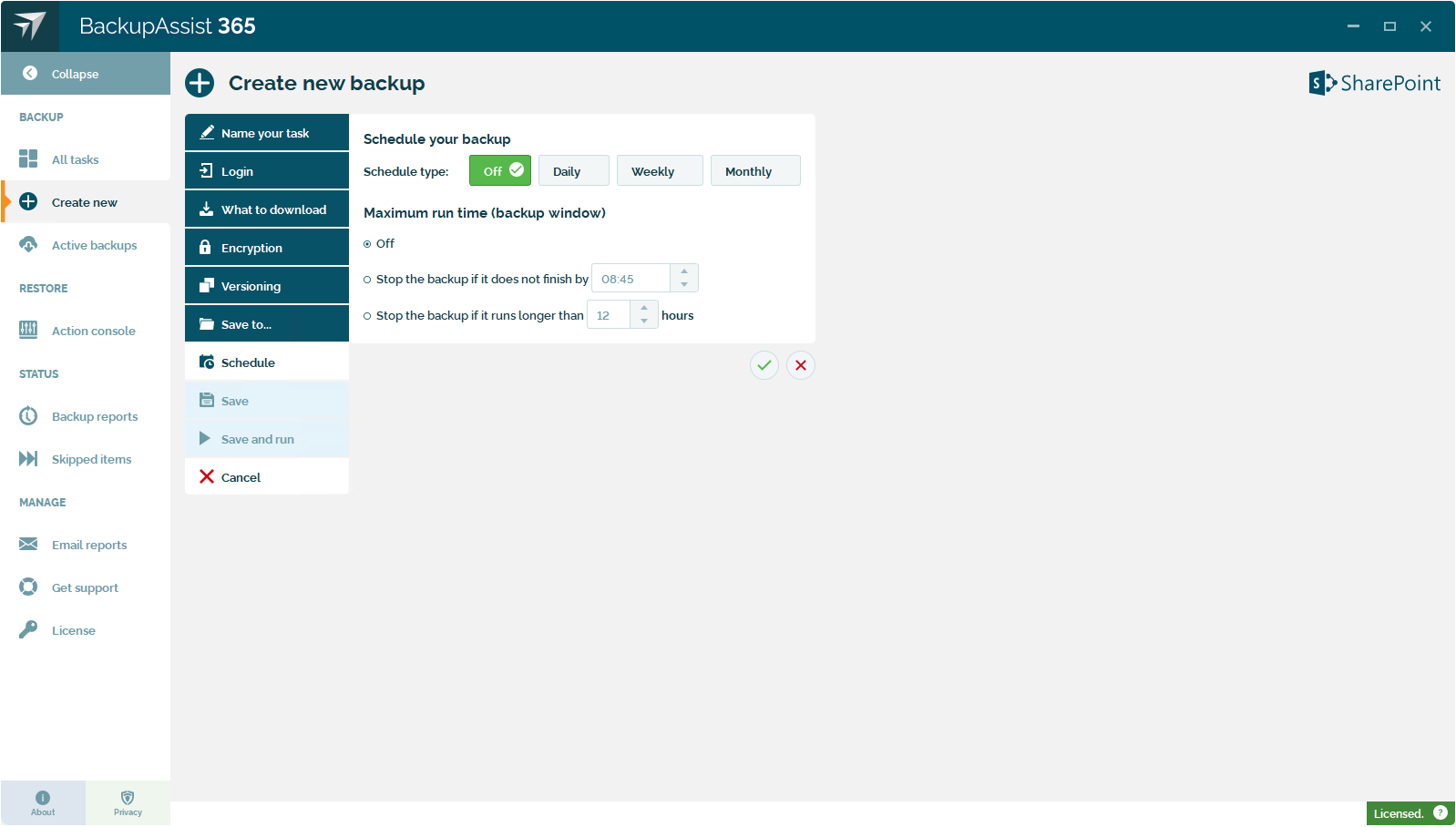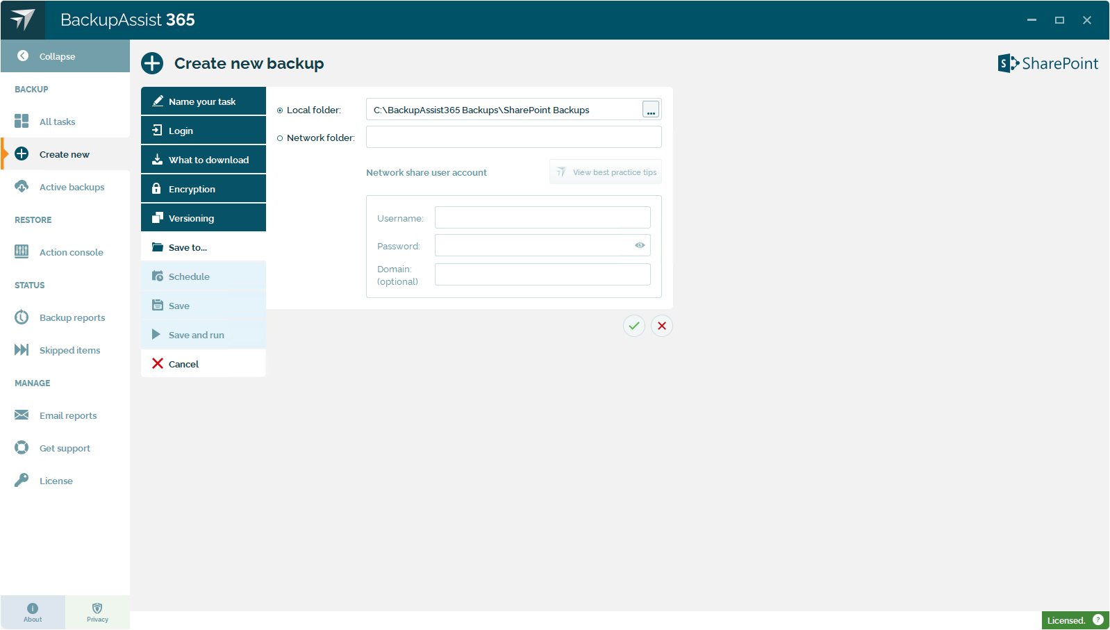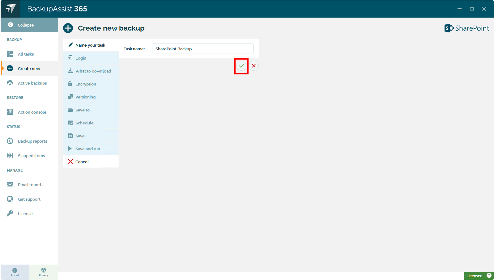 Damit ist die Konfiguration eines Backup-Tasks, um Ihre SharePoint-Sites zu sichern, abgeschlossen. Wenn Sie Fragen bezüglich BackupAssist 365 haben, können Sie sich gerne an unseren Support wenden.