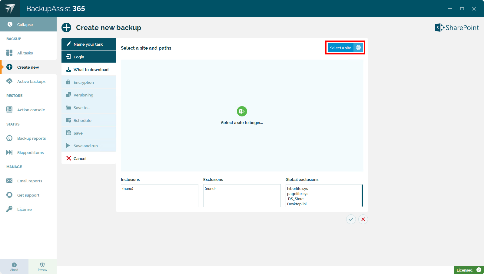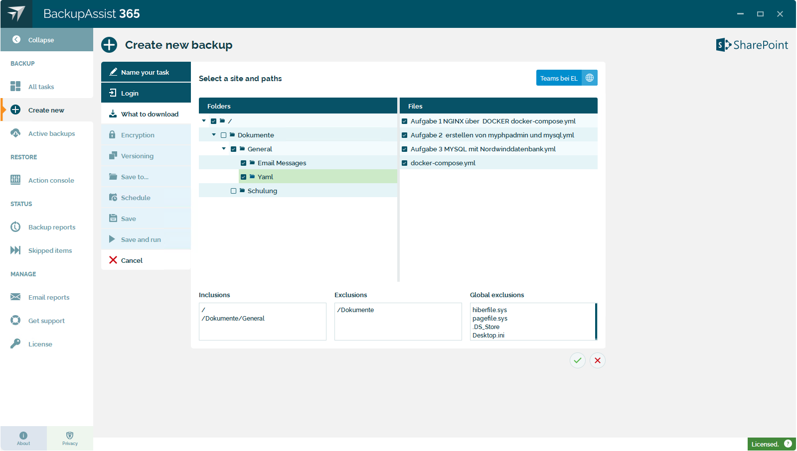 Wie sichere ich SharePoint-Sites mit BackupAssist 365?