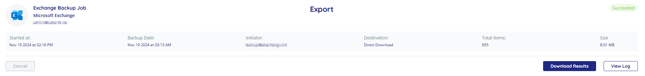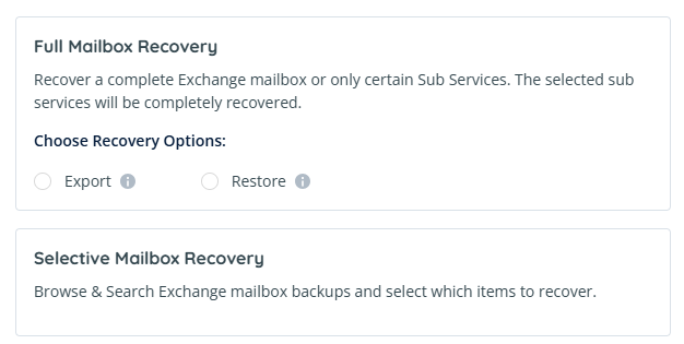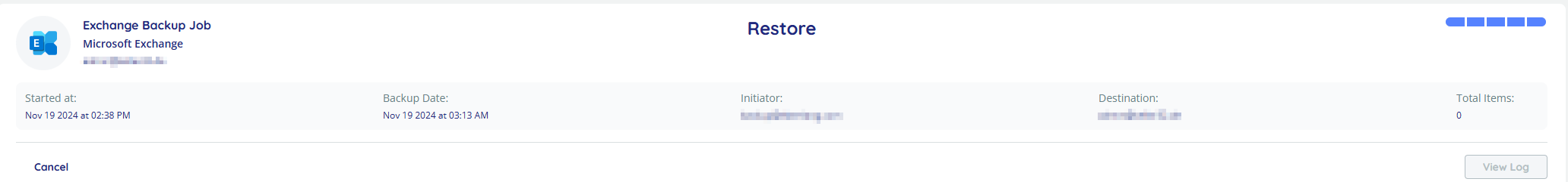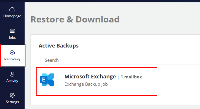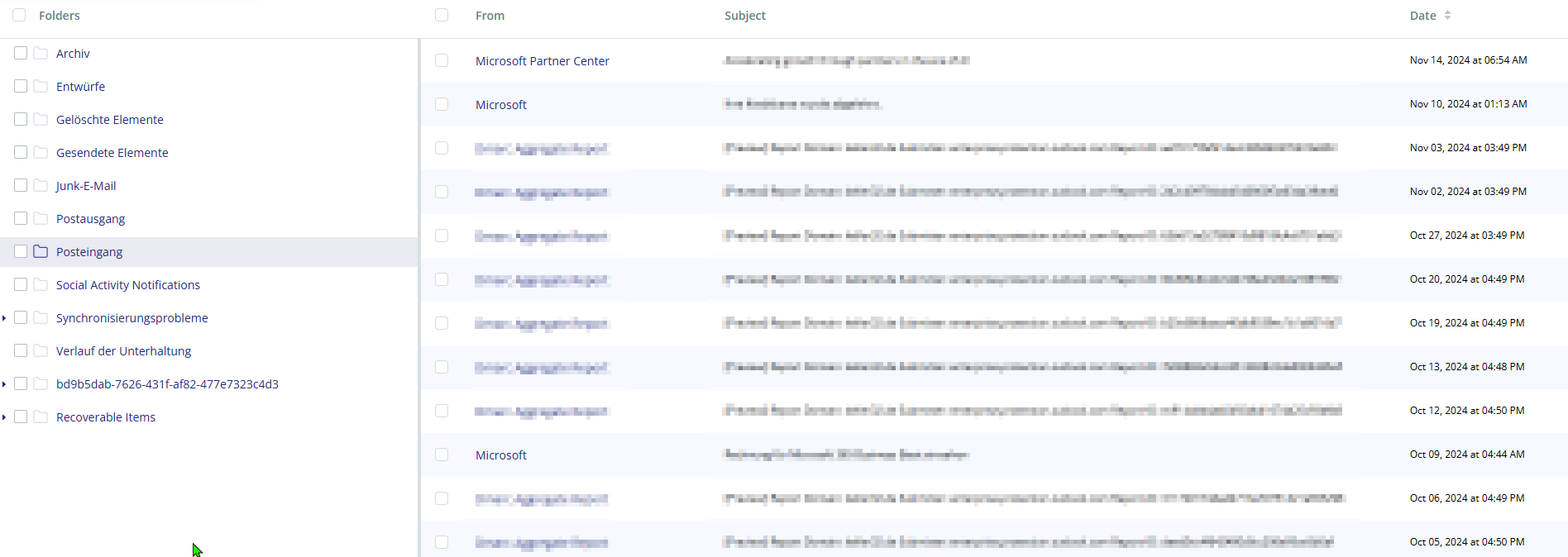 In unserem Beispiel wählen wir eine E-Mail aus dem Posteingang aus und wollen hierfür einen Wiederherstellungsjob starten. Nachdem wir die E-Mail ausgewählt haben, die wir wiederherstellen wollen, haben wir in der oberen rechten Ecke dieses Menüs die Möglichkeit, einen Export oder Restore anzustoßen.