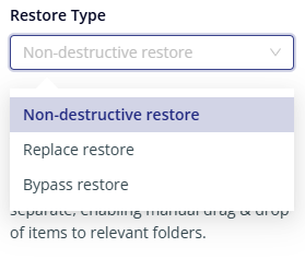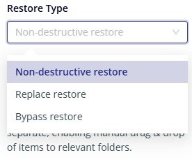 Zu beachten ist hier, welchen Restore Type Sie für die Wiederherstellung auswählen. Sie können hier zwischen folgenden Optionen auswählen: