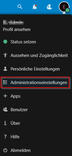 Wechseln Sie in die (Administrations-)Einstellungen Ihrer Instanz.