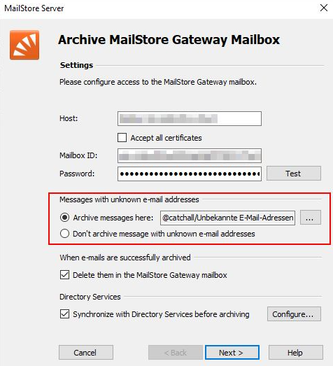 If the feature is not activated, there is a risk of data loss (e.g. in the case of employees who have left the company). You also have the option of selecting a different archive; CatchAll does not necessarily have to be used. Please note that, depending on the configuration, a further archive to be settled will be created if the target archive does not yet exist: