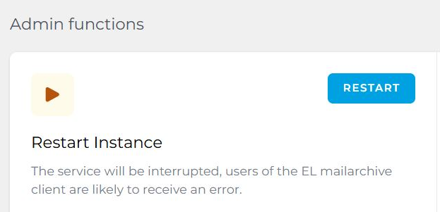 After correcting all incorrect settings and the next sync of the instance to the backend, the warning is no longer displayed and you can restart the instance in the Control Panel in the Admin functions section.