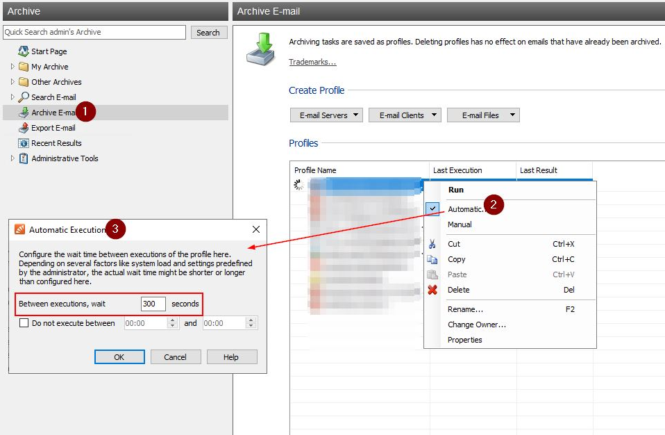 If, in addition to journaling mailboxes, you also want to automatically archive the users' mailboxes including the folder structure (mailbox archiving), the following applies: